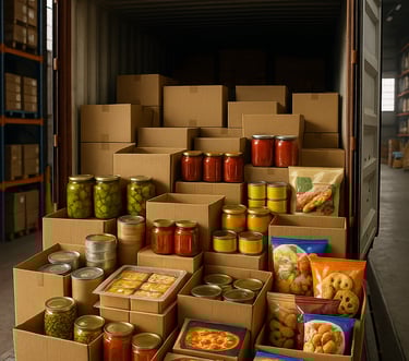 Export of processed and packaged foods, including preserves, frozen products, pasta, biscuits, and other long shelf‑life items.